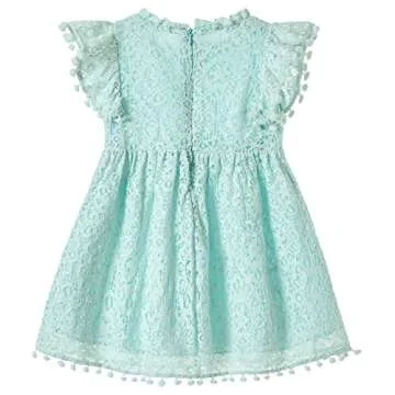 Niyage Toddler Girls Elegant Lace Pom Pom Flutter Sleeve Party Princess Dress Light Green 140