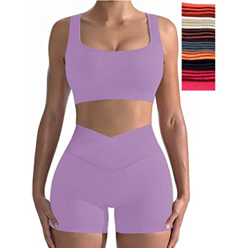 niyokki Yoga Outfit for Women Seamless 2 Piece Workout Gym High Waist Leggings with Sport Bra Set(Violet Purple, M)