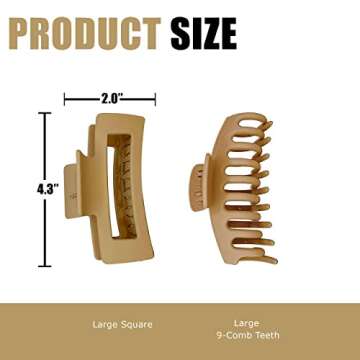 Show moreIntroducing the NIZA 8 PCS Large Claw Clips—your new styling essential! These jumbo hair clips, each measuring 4.3 inches, are designed specifically for women and girls with both thick and thin hair. Made from high-quality materials, these clips boast durability and functionality, ensuring they hold your hair securely without slipping. Available in three sophisticated colors—Black, Dark Brown, and Cream—these claw clips combine practicality with a chic aesthetic, making them perfect for any occasion. With a total of eight clips in one set, you’ll always have a clip ready to go, no matter the style.