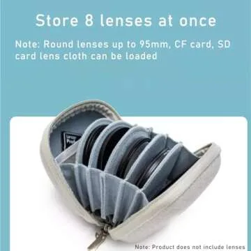 Show moreThe **Nkmooxe Durable Lens Filter Pouch Case** is the essential accessory for any photographer committed to protecting their valuable gear. Designed to hold up to **8 circular filters** securely, this case accommodates filter diameters up to **95mm** and thicknesses of **6.5mm**, ensuring that you can carry your complete set of filters without hassle. Its multi-protection capabilities, crafted from **durable EVA and high-quality polyester fiber**, provide outstanding defense against water, dust, and shocks. Whether at a bustling event or a serene nature shoot, you can trust that your filters will stay safe and ready to use.