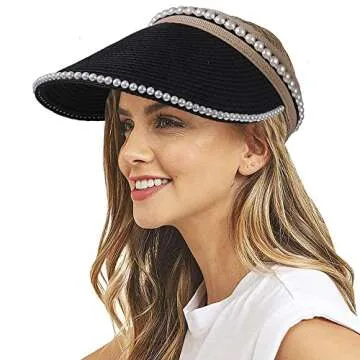 NLCAC Women's Pearl Straw Visor Hat - Chic Sun Protection for Summer