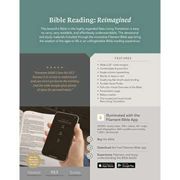 This Bible is designed with wide margins, ideal for note-taking, journaling, or personal reflections. With each page, you can immerse yourself in the Word and capture your thoughts and insights as they come to you. The Filament technology is a game-changer; simply scan the code on each page to unlock a wealth of digital content, including devotionals, study notes, and videos that complement your reading.