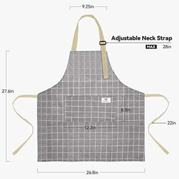 Each apron features an adjustable neck strap and long ties, ensuring a custom fit for all body types. Crafted from a lightweight yet robust cotton linen blend, these aprons are not just visually charming but also engineered to withstand the rigors of regular wear and washing. And, with their waterproof backing, you can cook and clean without the worry of spills tarnishing your clothes. With functional pockets included, you’ll have easy access to essential tools and utensils, making cooking an enjoyable breeze.