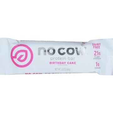 No Cow Protein Bars, Birthday Cake, 20g Plant Based Vegan Protein, Keto Friendly, Low Sugar, Low Carb, Low Calorie, Gluten Free, Naturally Sweetened, Dairy Free, Non GMO, Kosher, 1 Count (Pack of 5)
