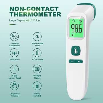No-Touch Thermometer for Adults and Kids, Digital Accurate Baby Thermometer with Fever Alarm, 1 Second Fast Result, FSA HSA Eligible, Easy to use, 2 in 1 Mode