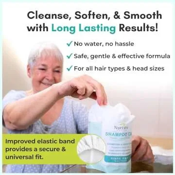 Show more If you’re searching for a revolutionary way to keep your hair fresh without the hassle of traditional washing, look no further than the No Water Rinse Free Shampoo Cap by Nurture. Designed with your convenience in mind, this innovative product allows for an effortless hair washing experience without the need for water. Simply heat it in the microwave for 30 seconds and slip it on to your head. It’s perfect for individuals who find it difficult to access a shower due to age, illness, or mobility challenges. Say goodbye to the stress of washing your hair and hello to a clean and refreshed feeling!