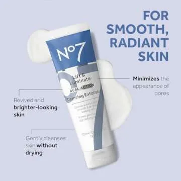 No7 Lift & Luminate Dual Action Cleansing & Exfoliating Face Wash - Gentle Face Exfoliator with Vitamin C, E & B5 - Deep Pore Cleanser for Dull & Uneven Skin Tone (3.3 Fl Oz)