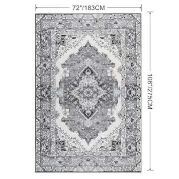 Noahas Area Rug 6x9 Washable Rug Grey and Blue Large Rugs for Living Room Vintage Kitchen Indoor Non Slip Low Pile Carpet