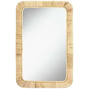 Noble Park Westby Rectangular Vanity Decorative Accent Wall Mirror Modern Rounded Corner Tan Natural Rattan Wrapped Frame 24" Wide for Bathroom Bedroom Living Room Home Office Entryway
