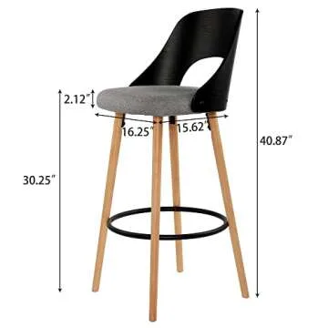 NOBPEINT Wooden Bar Chairs with Gray Fabric Seat, Solid Wood Backrest, Metal Footrest, 30 Inch Height, Set of 2, Walnut Finish (Black)