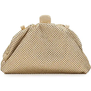 This chic bag not only dazzles with its stunning appearance but also boasts impressive functionality. Measuring at L22 x H14 x W7cm, the clutch provides ample space for your essentials, such as your smartphone, credit cards, and even a small charger, all while remaining compact and easy to carry. It features gold-toned metal hardware and a reliable frame clutch with a snap magnetic closure, making it both secure and stylish.