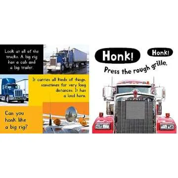 Show moreThe Noisy Trucks book is an enchanting adventure waiting to be explored by toddlers who have an insatiable curiosity for vehicles and sounds. This delightful interactive book brings the joys of a busy truck-filled day right into your child's hands, complete with engaging sound effects that mimic the real-world noises of trucks. The high-quality images and interactive texture elements on every page stimulate a child's senses and spark their imagination, making this book an invaluable addition to any toddler's library.