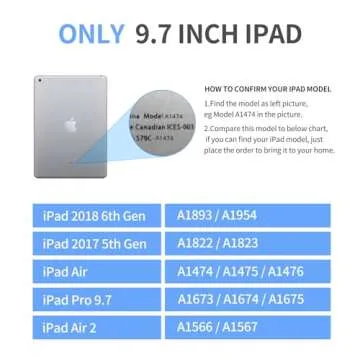 Show more Introducing the NOKBABO iPad Keyboard Case - the ultimate companion for your 9.7-inch iPad models, including the iPad Pro 9.7 inch, 2018 iPad 6th Gen, 2017 iPad 5th Gen, iPad Air 2, and iPad Air 1. This premium keyboard case not only enhances productivity with its integrated keyboard but also ensures that your device stays well-protected with its robust design. Available in a stunning Rose Gold finish, this case is tailored for individuals who appreciate both style and functionality. Confirm your iPad model by checking the model number on the back before purchasing, as this case is constrained to select models only.