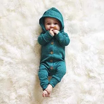 Nokpsedcb Newborn Kids Baby Boys Cute Solid Color Long Sleeve Hooded Romper Jumpsuit Top Outfits Clothes Green, 0-6 Months