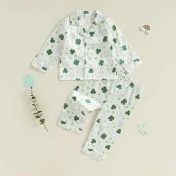 Nokpsedcb Toddler Pajamas Set Cute Shamrock Print for Kids Sleepwear