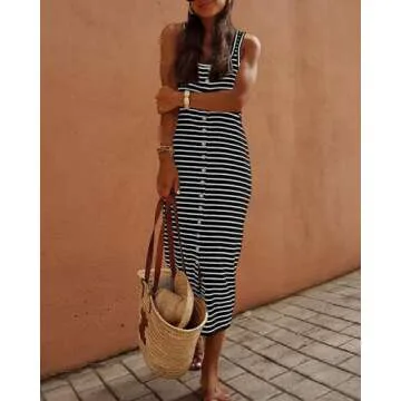 Show moreIntroducing the NOLLSOM Sleeveless Summer Dresses for Women, the quintessential selection for those warm days and special occasions! This stylish Midi Dress combines functionality and elegance, making it a perfect addition to your wardrobe. Made from a breathable and lightweight fabric, it promises all-day comfort, keeping you cool even on the hottest summer afternoons. With a chic U neck design that beautifully highlights your collarbone and an eye-catching decorated button detail, this dress exudes a casual yet sophisticated charm. Whether you're attending a wedding, going on holiday, or just enjoying a day out with friends, this dress will be your go-to choice.