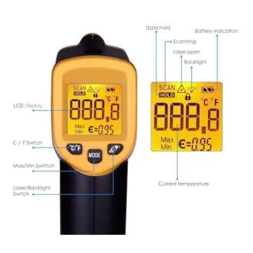 Non Contact Thermometers Digital Laser Infrared Thermometer Meat Thermometer Temperature Gun -58℉~ 716℉ / -50℃ ~ 380℃