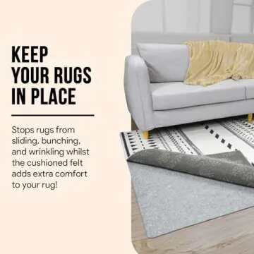 Discover the ultimate solution for your rugs with our Non Slip Rug Pad, a versatile and essential accessory designed to enhance the safety and elegance of your home. Measuring 2x10 feet and crafted from a cushioned 4/25" thick felt and rubber material, this rug pad guarantees to keep your area rugs securely in place on a variety of surfaces. Whether you have beautiful hardwood, modern tile, or cozy carpet, our rug gripper delivers a superior grip that minimizes slipping and...