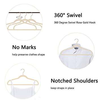 Premium Non-Slip Velvet Clothes Hangers - 360° Swivel & Rose Gold Hook - Pack of 50