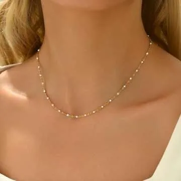 NONAMOIS Gold Chain Necklace for Women Dainty Gold Thin Enamel White Beaded Necklace Simple Gold Boho Bridal Jewelry