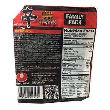 Show moreDiscover the rich, savory taste of Nongshim Korean Ramen Family Pack (Shin Black). This delectable ramen features a unique blend of spicy Korean seasonings, giving you the authentic experience of traditional Korean cuisine right in your home. With its thick, chewy noodles and robust broth, each bite is packed with flavor, making it a satisfying meal for everyone at the dinner table. Perfect for family gatherings, this family pack contains multiple servings, ensuring you'll have enough to share with loved ones or to enjoy alone. Experience comfort in a bowl with Shin Black ramen that brings warmth and joy to any meal.