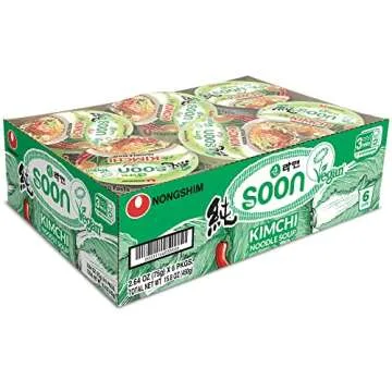 ... Show moreIntroducing the Nongshim Soon Kimchi Instant Vegan Ramen Noodle Soup Mix Cup – a delightful fusion of flavor and convenience designed for the modern palate. This 6-pack of microwaveable ramen cups is not just an easy meal option; it’s a culinary journey that transforms your lunch hour into a satisfying experience. Each cup features a delectable blend of real kimchi flakes, offering a taste of authentic Korean cuisine that’s sure to impress both seasoned fans and newcomers alike.