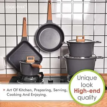 Nonstick Cookware Set 15 Piece, Ultra Non-Stick Pots And Pans Set, Stay-Cool Handles, Induction Cooking Set w/Frying Pans & Saucepans, PFOS & PFOA Free, Works on All Cooktops, Slate Gray