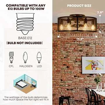 Show moreTransform your home with the NookNova Ceiling Fans with Lights, an impeccably designed 18-inch flush mount ceiling fan that cleverly combines style and function. This industrial fixture is a masterpiece of design, meticulously crafted over a year by expert home product designers. With its unique mesh and rhombus element, this ceiling fan not only keeps you cool but also adds a touch of sophistication to any space. Measuring approximately 17.7x17.7x7.9 inches, it features an innovative built-in recessed design that safely conceals blades, providing peace of mind for families with young children while maintaining a sleek appearance. The matte black finish and intricate cage design work harmoniously to ensure your room remains both neat and elegant.