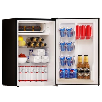 This mini fridge has a capacity of 2.6 cubic feet, perfect for storing beverages, veggies, fruits, and snacks.
