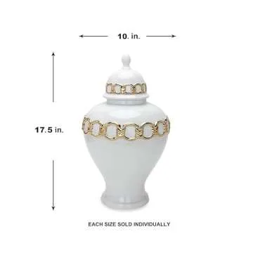 Show moreIntroducing the Noori Home Modern Glam Artisan Ceramic SOPH Medium White/Gold Ginger Jar Urn with Lid—a statement piece that combines exquisite craftsmanship with practical elegance. Made from high-quality materials, this stunning ginger jar not only serves as a functional storage solution but also enhances your interior décor with its modern glam aesthetic. The striking white and gold finish gives it a luxurious flair, allowing you to showcase your pantry or any corner of your home with style. Perfectly sized to complement any space, this medium urn will effortlessly elevate your home décor.