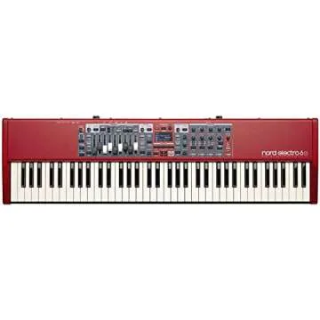 Show more The Nord Electro 6D 73 Stage Piano Bundle is an exceptional instrument designed for both aspiring and seasoned keyboard players. This remarkable bundle comes complete with a sturdy keyboard stand, an expression pedal, a sustain pedal, an Austin Bazaar instructional DVD, and a polishing cloth—all the essentials you need to elevate your playing experience. With its semi-weighted waterfall keys and a stunning red finish, this stage piano not only sounds fantastic but looks great on stage or in your studio.