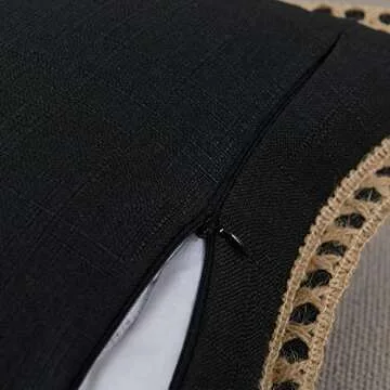 Show more The NordECO HOME Set of 2 Farmhouse Throw Pillow Covers offers an exquisite touch to your home decor with their unique burlap linen trim. Designed for those who appreciate vintage aesthetics, these stylish pillow covers measure 18 x 18 inches (45 x 45 cm), making them ideal for any couch, sofa, or bed. Crafted with high-quality polyester, they feature sturdy edges and zipped closures that ensure durability while providing a seamless look that complements various interior designs. Note that each set includes two covers only, with cushion inserts sold separately.
