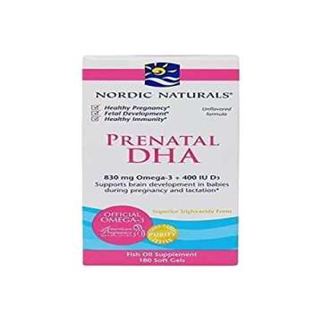 Nordic Naturals Prenatal DHA, Unflavored - 830 mg Omega-3 + 400 IU Vitamin D3-180 Soft Gels - Supports Brain Development in Babies During Pregnancy & Lactation - Non-GMO - 90 Servings