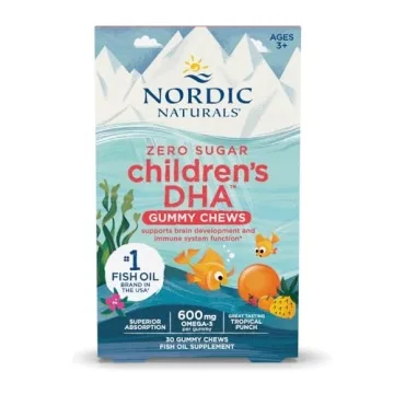 Show more Introducing the Nordic Naturals Zero Sugar Children’s DHA Gummy Chews – the perfect blend of nutrition and taste, meticulously crafted to support your child’s health. Designed for children aged 3 and up, these scrumptious gummy chews are packed with essential Omega-3 EPA & DHA, boasting a total of 600 mg of Omega-3s to aid in healthy brain development, enhance learning capabilities, and bolster immune function. The delightful tropical punch flavor ensures that your child will actually look forward to their daily supplement, making it a hassle-free addition to their routine.
