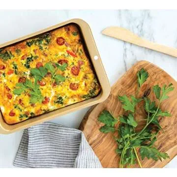 One of the standout features of this casserole pan is its innovative nonstick coating, which guarantees effortless release of food and simplifies post-meal cleanup. Say goodbye to scrubbing and soaking; a quick wash is all it takes to maintain its pristine condition. Plus, it proudly carries the mark of quality being made in the USA, ensuring you’re purchasing a product built to last.