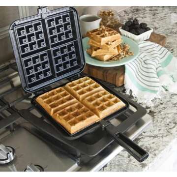 Made of cast aluminum for even heating, bakes delicate but crisp waffles