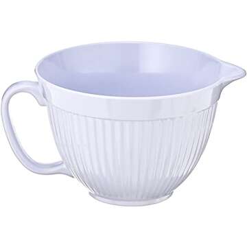 Show moreIntroducing the perfect companion for your culinary adventures – the 3QT Melamine Batter Bowl. Designed with the avid baker in mind, this bowl makes mixing, pouring, and storing your favorite batters for cakes, pancakes, waffles, and crepes a breeze. Crafted from durable melamine, it not only ensures longevity but also prioritizes functionality with its non-slip bottom that keeps the bowl stable on slippery surfaces. The bowl's built-in spout and comfortable handle allow for effortless pouring, making it ideal for transferring batters without the mess.