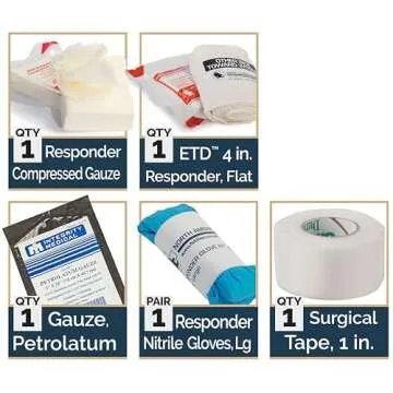 North American Rescue Individual Aid Kit NAR Compact First Aid with Compressed Gauze, Petrolatum Gauze, ETD, Gloves, Surgical Tape (85-0404)