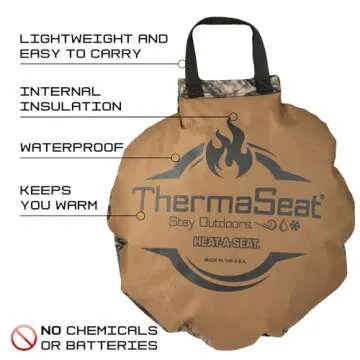 Northeast Products Heat-A-Seat by ThermaSeat- Insulated Hunting Seat Cushion, Blaze/Black 17-Inch, Coyote 600 Denier/Mossy Oak Camo