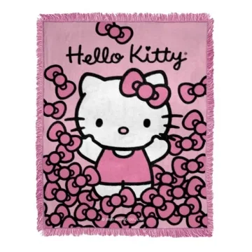 Show moreExperience the ultimate comfort and style with the Northwest Hello Kitty Woven Jacquard Throw Blanket. Perfectly sized at 46" x 60", this delightful blanket isn’t just a cozy accessory; it’s a vibrant homage to everyone’s favorite feline character! Crafted from high-quality 100% acrylic, it offers a plush, soft touch that is just impossible to resist. The intricate, triple-woven design features colorful imagery of Hello Kitty surrounded by her iconic bows, making it a striking addition to any room, whether you're snuggling up for a movie night or adding charm to your living decor.
