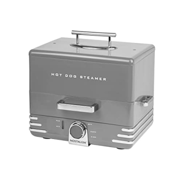 Show more Unleash the joy of diner-style hot dogs right in your kitchen with the Nostalgia Extra Large Diner-Style Steamer. This exceptional steamer is tailored for group gatherings, effortlessly cooking up to 24 hot dogs and warming 12 buns simultaneously. With its versatile design, you can also steam breakfast sausages, bratwursts, vegetables, fish, and dumplings, expanding your culinary possibilities. Ideal for parties, game days, or simply a family meal, this steamer combines functionality with fun!