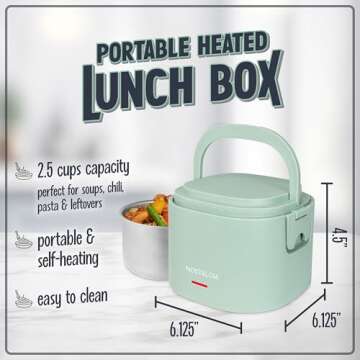 Nostalgia Portable 20-Ounce Electric Heated Lunch Box – Travel Size 2.5 Cup Capacity for Soup, Chili, and Leftovers – Leak Proof Silicone Sealed Lid, Foldable Carry Handle, Detachable Cord – Sage