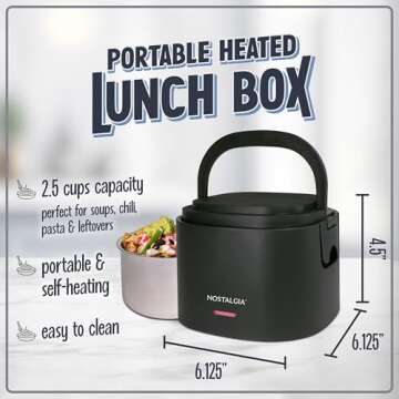 Nostalgia Portable 20-Ounce Electric Heated Lunch Box – Travel Size 2.5 Cup Capacity for Soup, Chili, and Leftovers – Leak Proof Silicone Sealed Lid, Foldable Carry Handle, Detachable Cord – Black