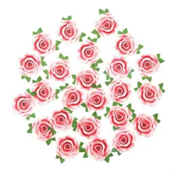 Not 3D 24Pcs Edible Cupcake Topper Pink Rose By Rice Paper Cake Decoration Party Decoration