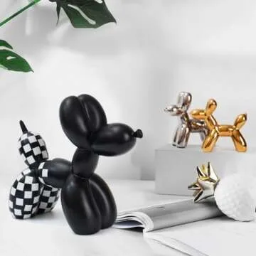 Notakia Black and White Checkered Racing Car Pattern Balloon Dog Statue Crafts Living Room Desktop Decorations,Handmade Modern Small Shelf Decor Animal Statue Ornament Home Decor Accents