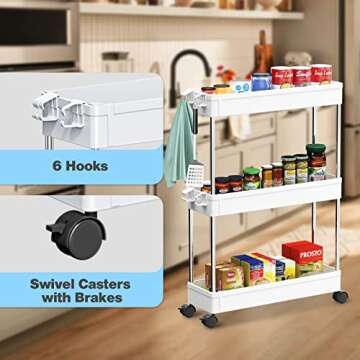 NOTHEIA Slim Storage Cart 3-Tier, Bathroom Organization Slide Out Cart, Laundry Utility Cart, Snack Cart with Wheels Thin Space Solutions, White