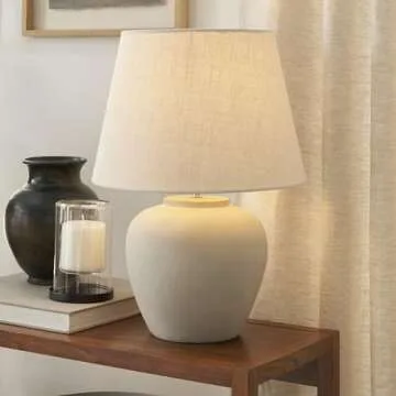 Nourison 20" Light Grey Ceramic Pot Table Lamp for Bedroom, Living Room, Console, Entryway