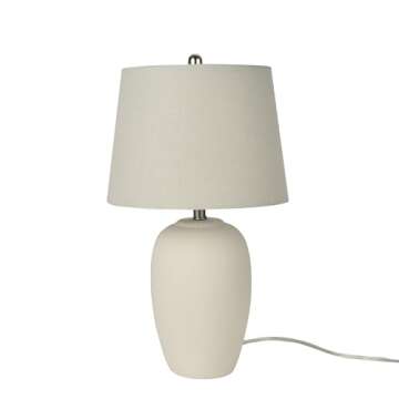 Show moreIntroducing the Nourison 23" Natural White Ceramic Jar Table Lamp, an exquisite piece that combines artistry with functionality. This beautiful lamp features a pottery-inspired off-white finish, creating a chic and welcoming atmosphere in any space it occupies. Whether placed on a bedside table, in your living room, or on your office desk, this lamp effortlessly enhances your interior. Its generous dimensions of 14-in x 14-in x 23-in make it a striking focal point, while the elegant off-white shade softens and diffuses light, giving your surroundings a cozy ambiance.
