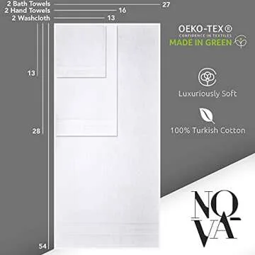NOVA Luxury Linen - Hotel Quality Turkish Towel Set for Bathroom (6 Pcs Towel Set, Pure White)