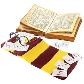 Show more Unleash your inner hero with our **Novelty Scarf Wizard Glasses Set**! This enchanting combination features playful accessories designed to bring a classic cosplay image to life. Perfect for every imagination, the set includes stylish wizard glasses crafted from high-quality food-grade plastic—ensuring both safety and comfort. Don the novelty scarf and complete your transformation into a magical character ready to take on any adventure. Also included are **12 vibrant lightning bolt temporary tattoos** made from **non-toxic materials**, ensuring a fun and safe experience for kids. With easy application and quick removal, these whimsical add-ons promise to elevate any costume into something spectacular.